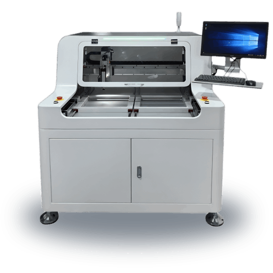 本設(shè)備主要利用銑刀高速運轉(zhuǎn)將多連片式PCB按預(yù)先編程路徑分割開來,取代人工折斷或V-CUT或PUSH的切割瑕疵,有效的降低分板時產(chǎn)生的應(yīng)力,并且分板切割面光滑無毛刺